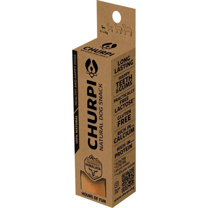 Realizzato secondo un’antica ricetta himalayana con latte di yak e zebù, il Churpi è uno snack 100% naturale, sano e irresistibile. Lavorato artigianalmente e affumicato per 28 giorni, è privo di additivi e conservanti, ricco di vitamine e minerali essenziali. Il tuo cane lo gusterà a lungo, rosicchiandolo poco a poco: un passatempo sano che aiuta a ridurre ansia e noia, rafforzando denti e gengive. Un mix unico di gusto, nutrimento e intrattenimento!