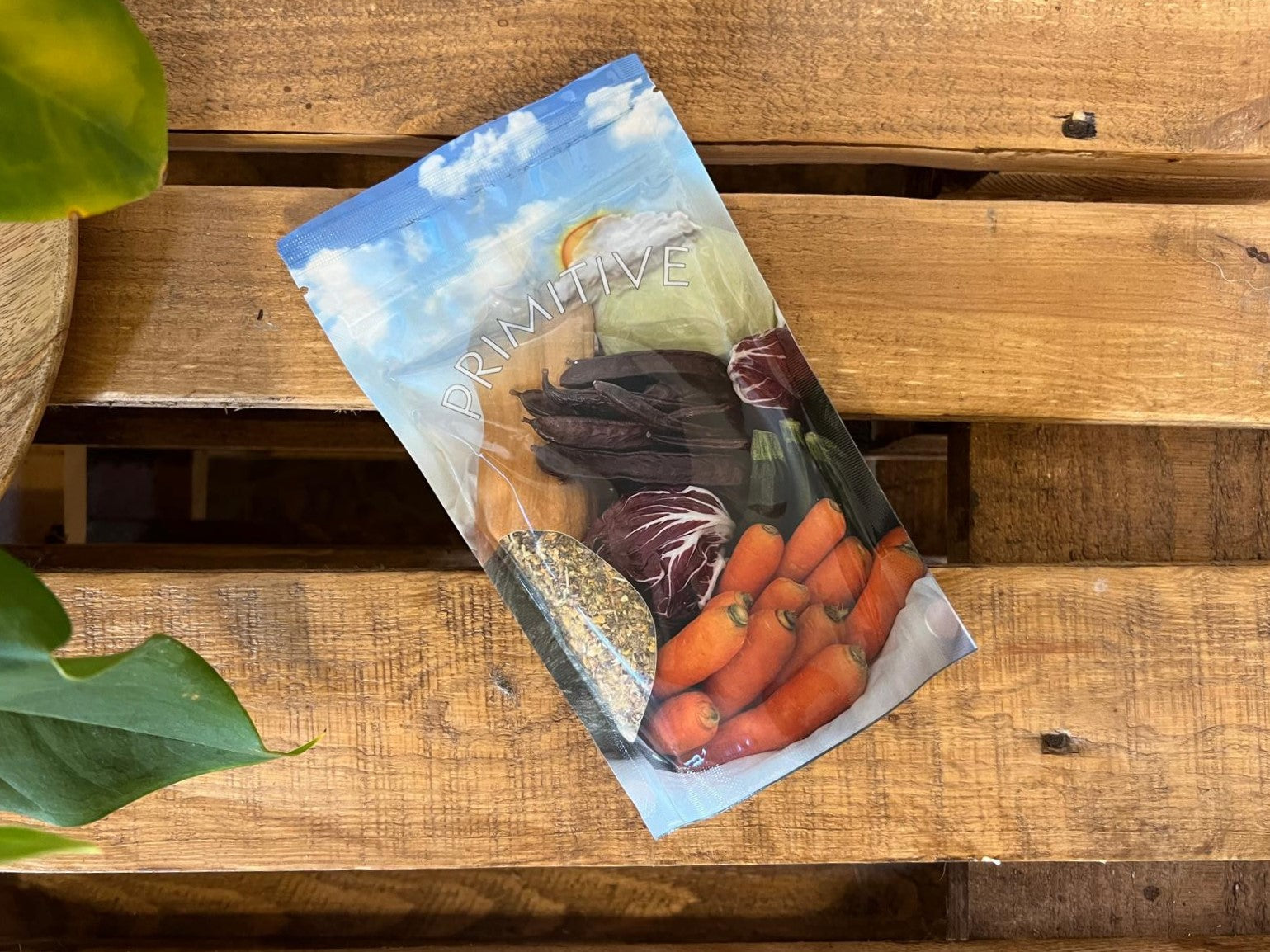 Miscela di verdura disidratata a bassa temperatura senza pesticidi, coloranti o conservanti, prodotta da un'azienda agricola e macinata finemente per un migliore assorbimento dei nutrienti del tuo amico a quattro zampe.